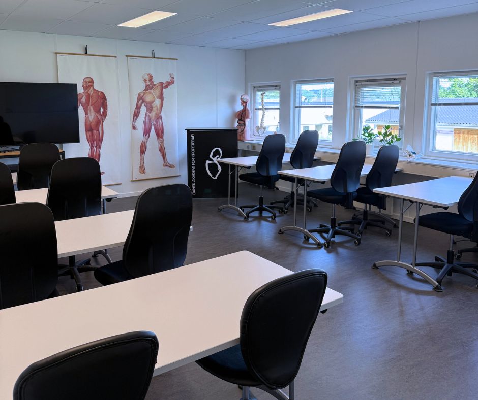 På Dansk Akademi for Kropsterapi er det muligt at leje sig ind i skolens undervisningsrum, når disse ikke bruges af skolen selv. Skolen rummer 700 m² og 4 undervisningslokaler, der kan lejes. Læs mere om hvert lokale nedenfor.