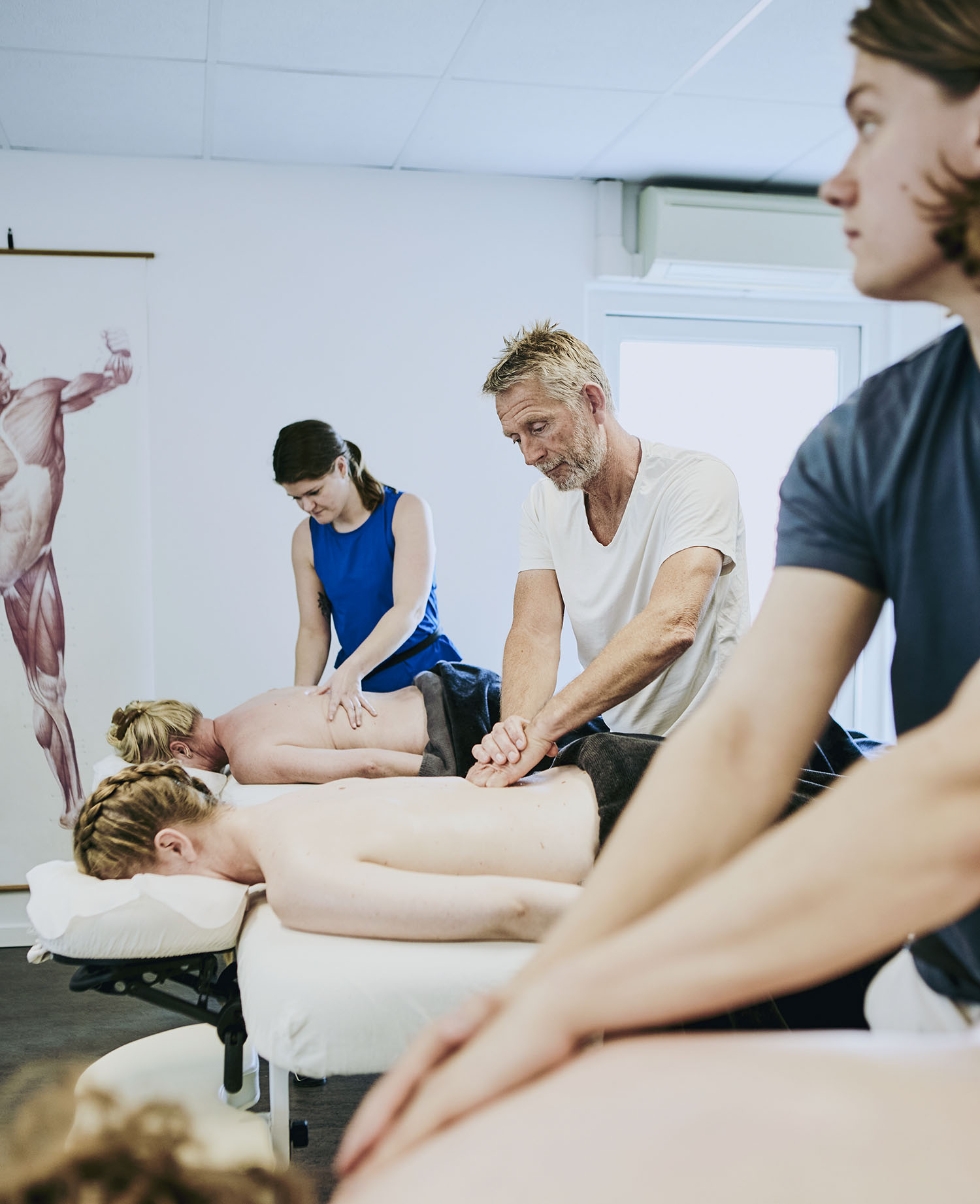 Mange vælger at bruge denne første del til at finansiere resten af uddannelsen, da den giver mulighed for at tage imod klienter allerede tidligt i forløbet. Med grunduddannelsen alene kan du nemlig søge arbejde hos fx fysioterapeuter og kiropraktorer – eller starte som selvstændig.